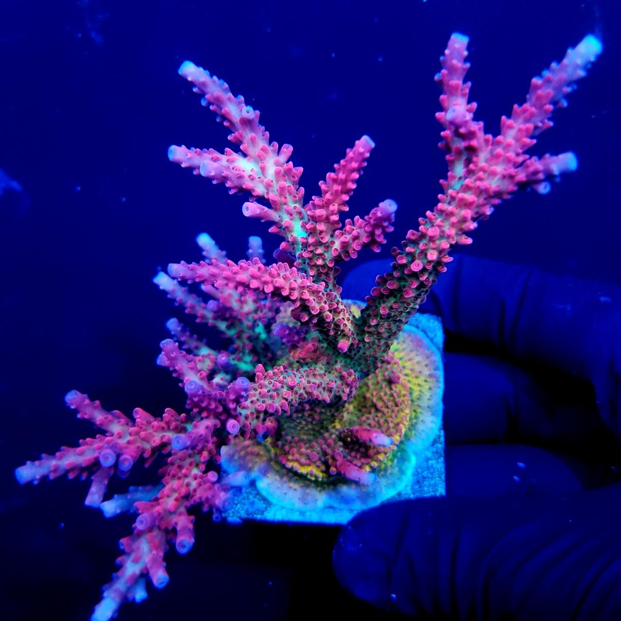 Background: This acro seems to be the same species as the classic PC Rainbow. It shares many of the same characteristics, but it will develop pinks and a few other colors we've never seen before on PC Rainbow.