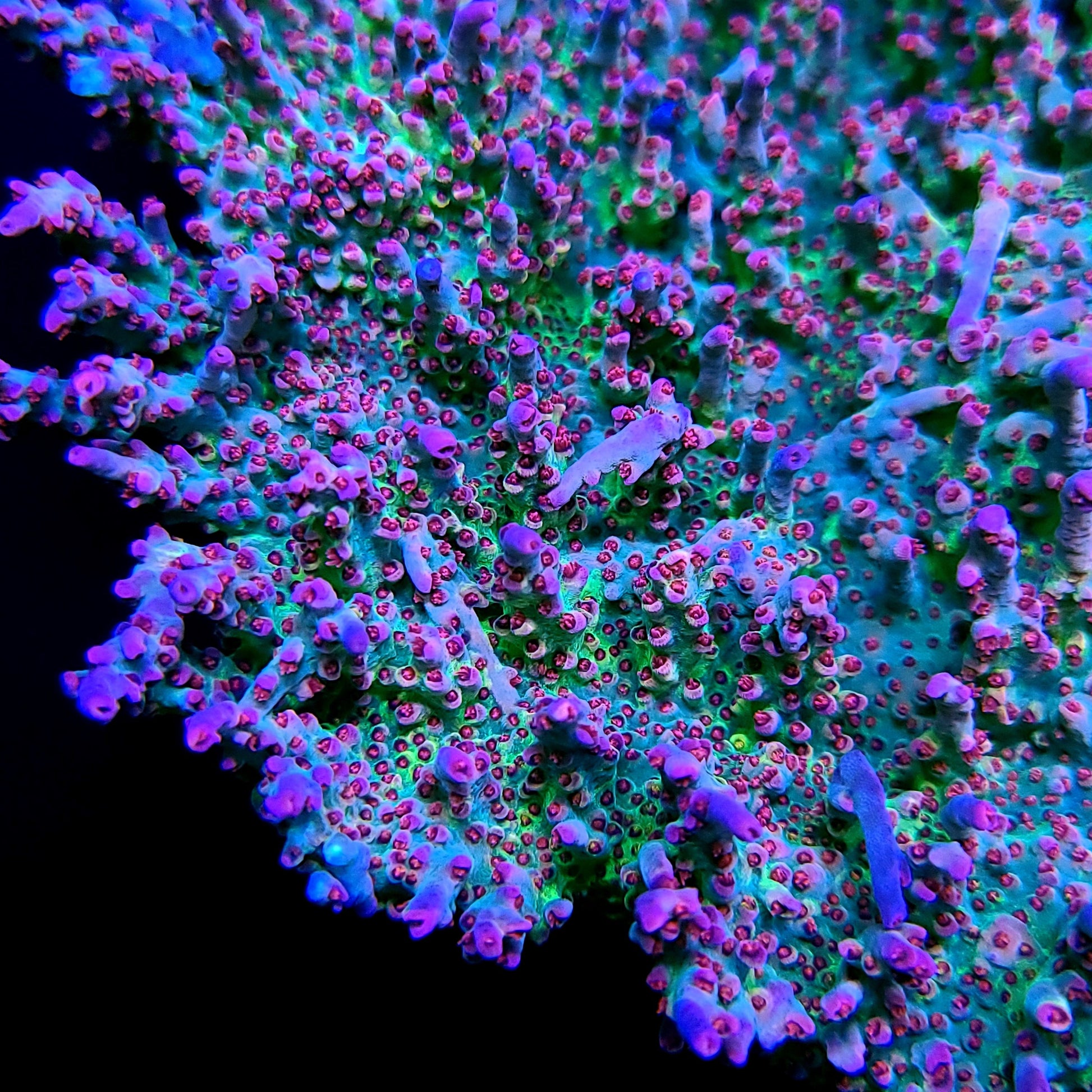 Background: We've kept this piece for many years in our 300 gallon display tank. It makes for a beautiful table with the contrasting pinks and greens.