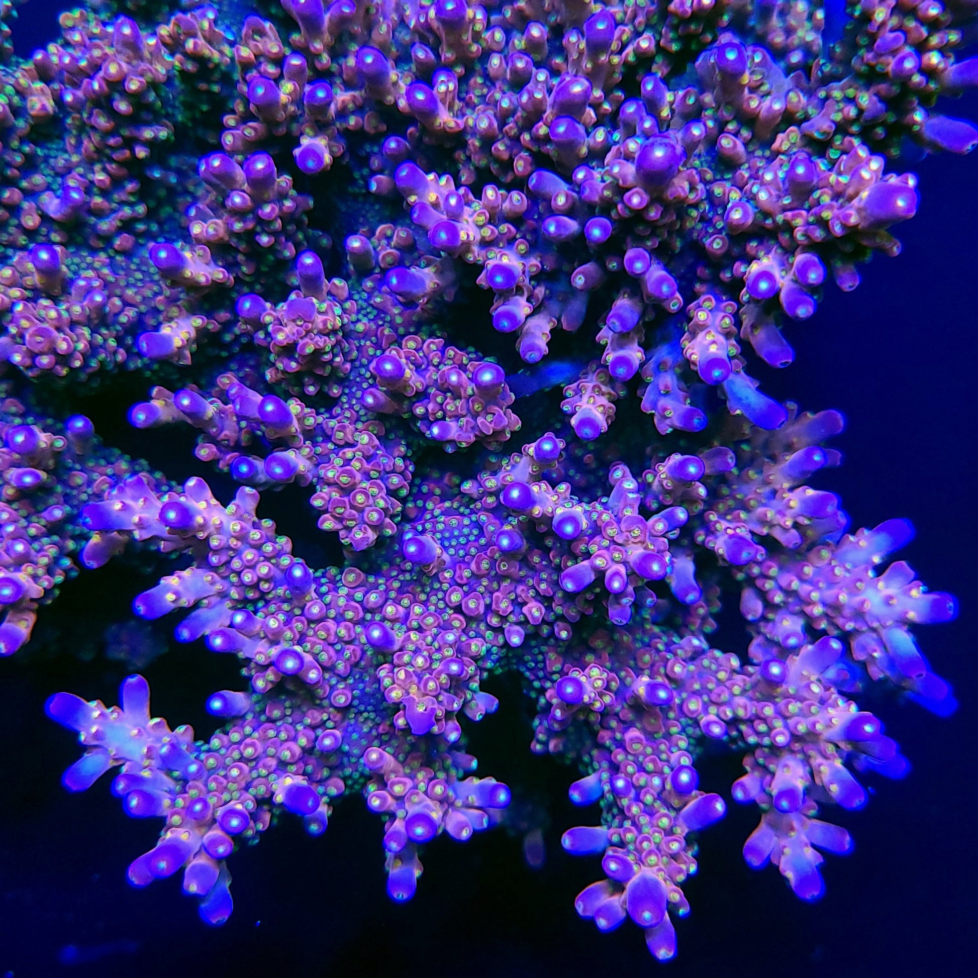 Background: This one is a sleeper as a frag, but gets some amazing colors once it starts throwing new branches. It does best for us in higher light and flow.